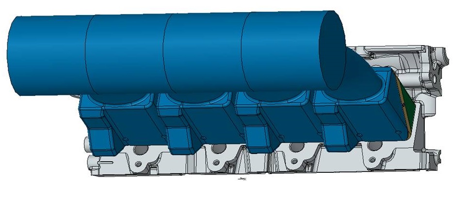 HGVs on a cylinder head of a four-cylinder inline-engine
