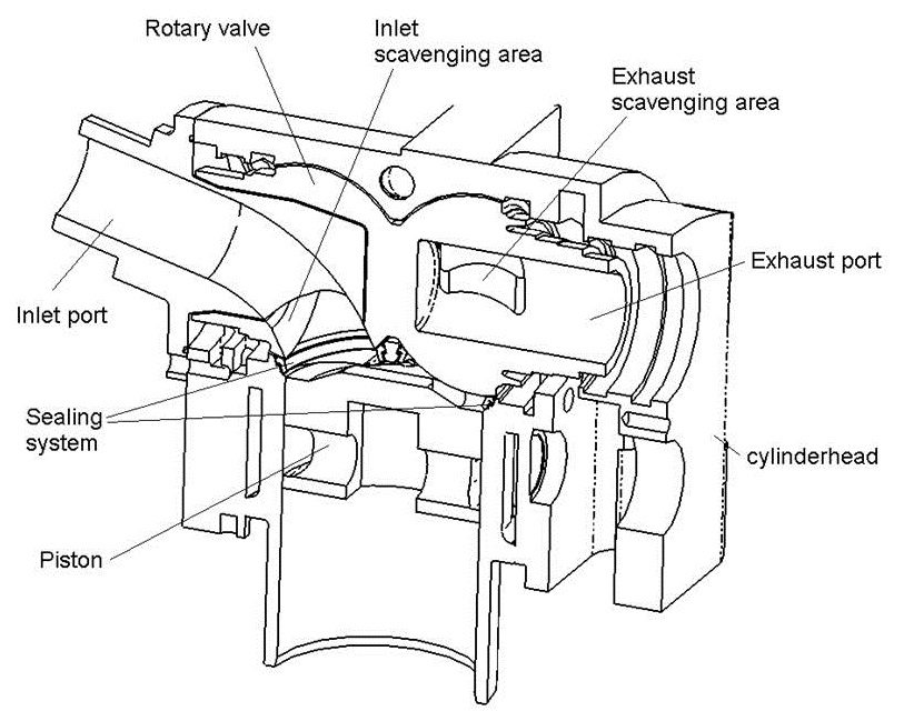 - Reduced noise emmision of the cylinder head due to missing oscillating poppet valves